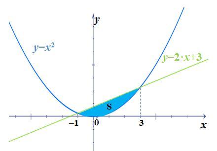 Площадь S фигуры вычислим с помощью определенного интеграла: