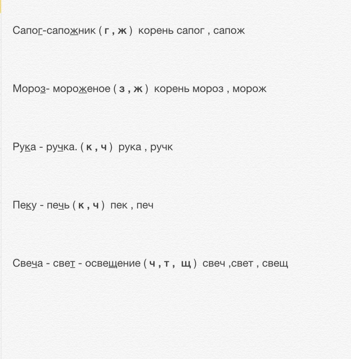 свеча - свет - освещение свет- свеч- свещ ч\\т\\щ