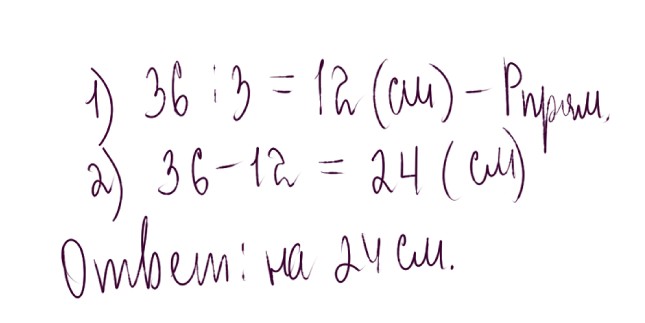Периметр треугольника 36 см, а периметр прямоугольника в 3 раза меньше. На сколько сантиметров периметр треугольника больше периметра прямоугольника?