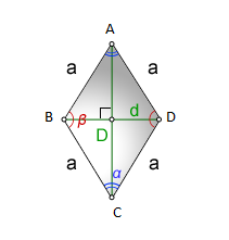 По теореме Пифагора находим одну из сторон ромба а. По скольку острый угол равен 60, а большая диагональ будет являться биссектрисой угла. Мы получим 4 прямоугольных треугольника (см. рисунок), где по теореме: против угла в 30 градусов лежит катет равен половине гипотенузу, гипотенуза это и есть наша а, а катет половина меньшей диагонали (BD/2 = 1.5), т.е. а = 1.5*2 = 3. Далее воспользуемся формулой для нахождения площади:
