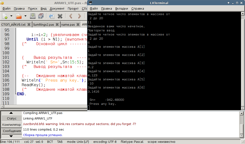 a1*2a2 – 3a3*4a4 + 5a5*6a6 +…(тема:одномерные массивы)