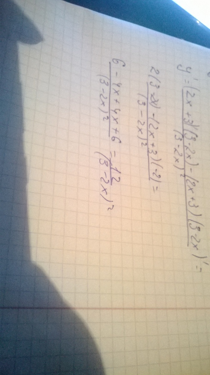 = (2(3-2x) - (2x+3)(-2)) / (3-2x)^2 = (6-4x+4x+6)/(3-2x)^2 = 12/(3-2x)^2