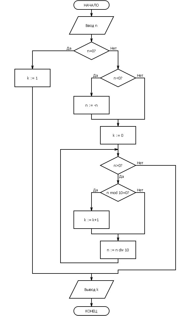 В блок-схеме операция mod - остаток от целочисленного деления, div - целочисленное деление