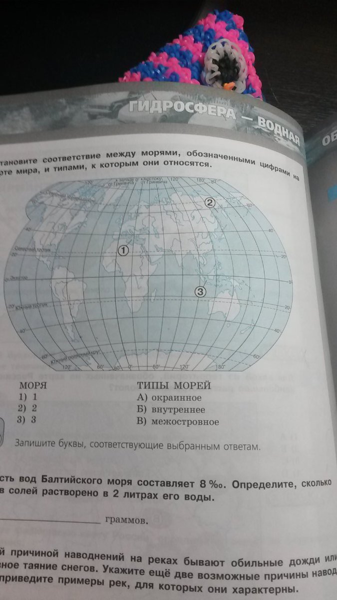 Установите соответствие между морями обозначенными цифрами на карте мира и типами у которым они относятся