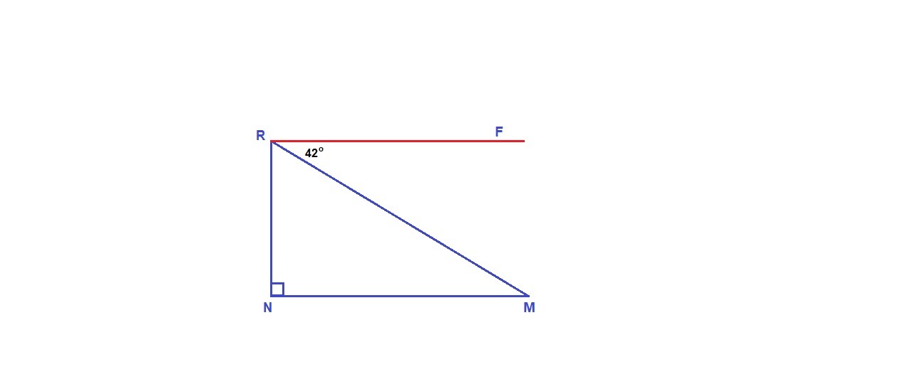 ∠М = ∠MRF = 42° как накрест лежащие при пересечении параллельных прямых RF и MN секущей RM.