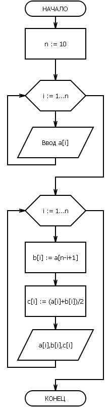 b[i]:=a[n-i+1]; c[i]:=(a[i]+b[i])/2;