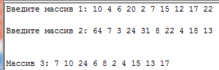 Ввести два целочисленныхмассива − по 10 элементов в каждом. Сформировать новый массив, на четных местах которого будут элементы с нечетными индексами из первого массива, а нанечетных – с четными индексами из второго.Написать программу на паскале
