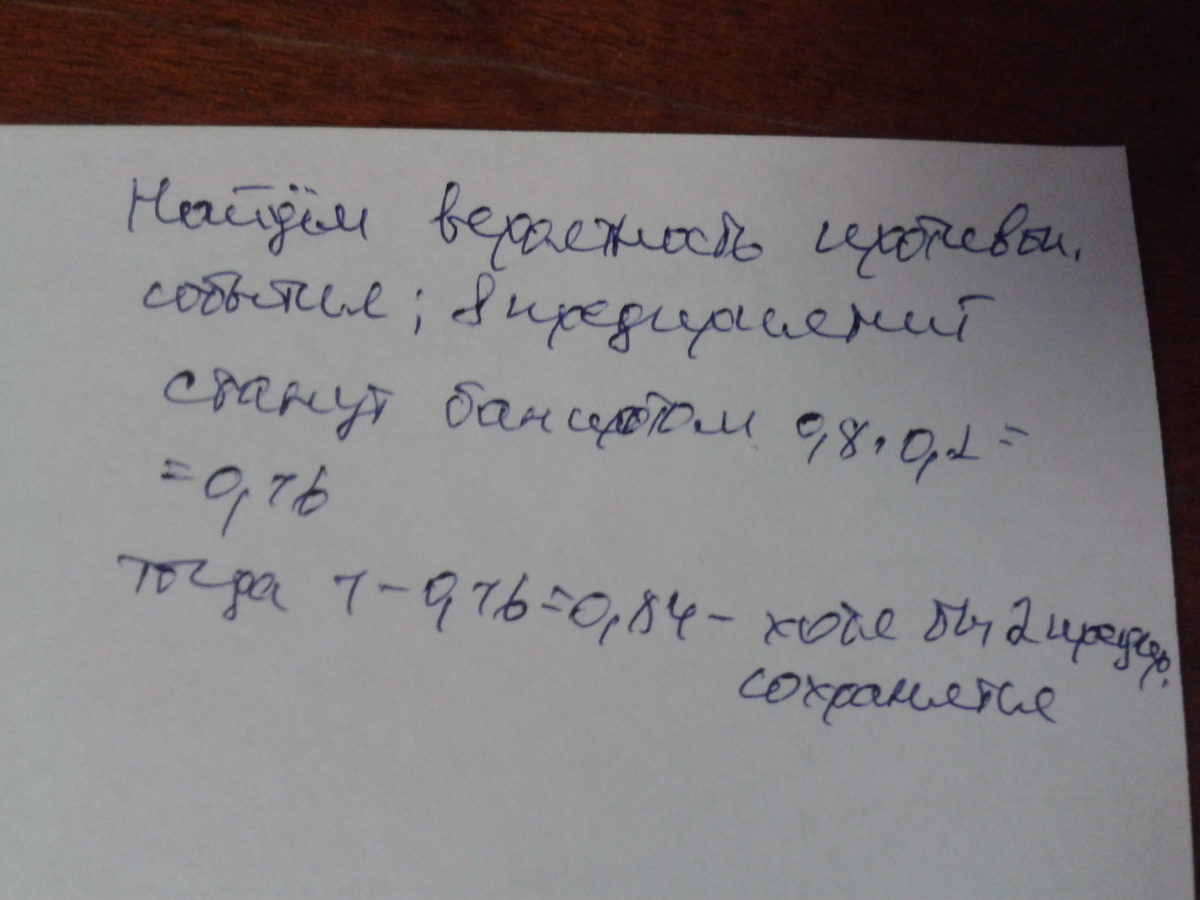 вероятность того, что малое предприятие за год станет банкротом = 0,2. найти вероятность, что из 10 предприятий за год сохранятся ХОТЯ БЫ 2