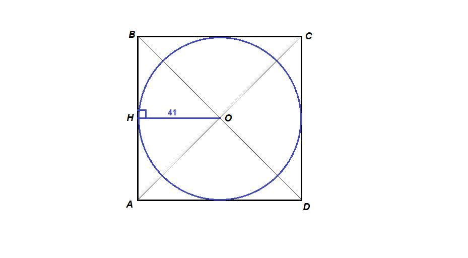 Найдите площадь квадрата, если радиус вписанной в него окружность равен 41: