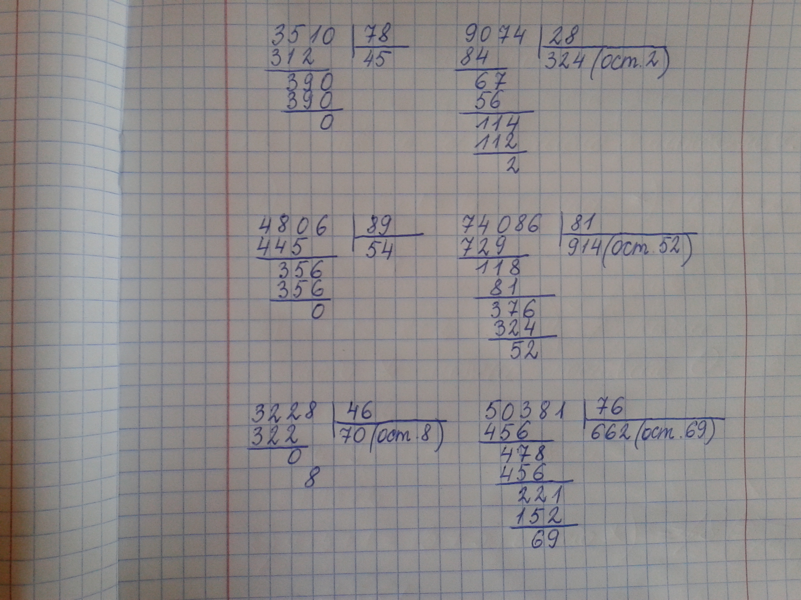 нужно выполнить деление уголком 3510:78 ; 9074:28 ; 4806:89 ; 74086:81 ; 3228:46 ;50381:76 помогите пожалуйста