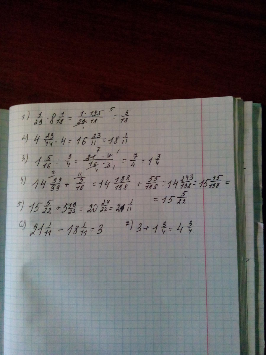 1)14 целых 94/99+1/29* 8 целых 1/18+5 целых 19/22- 4 целых 23/44*4+ 1 целая 5/16:3/4