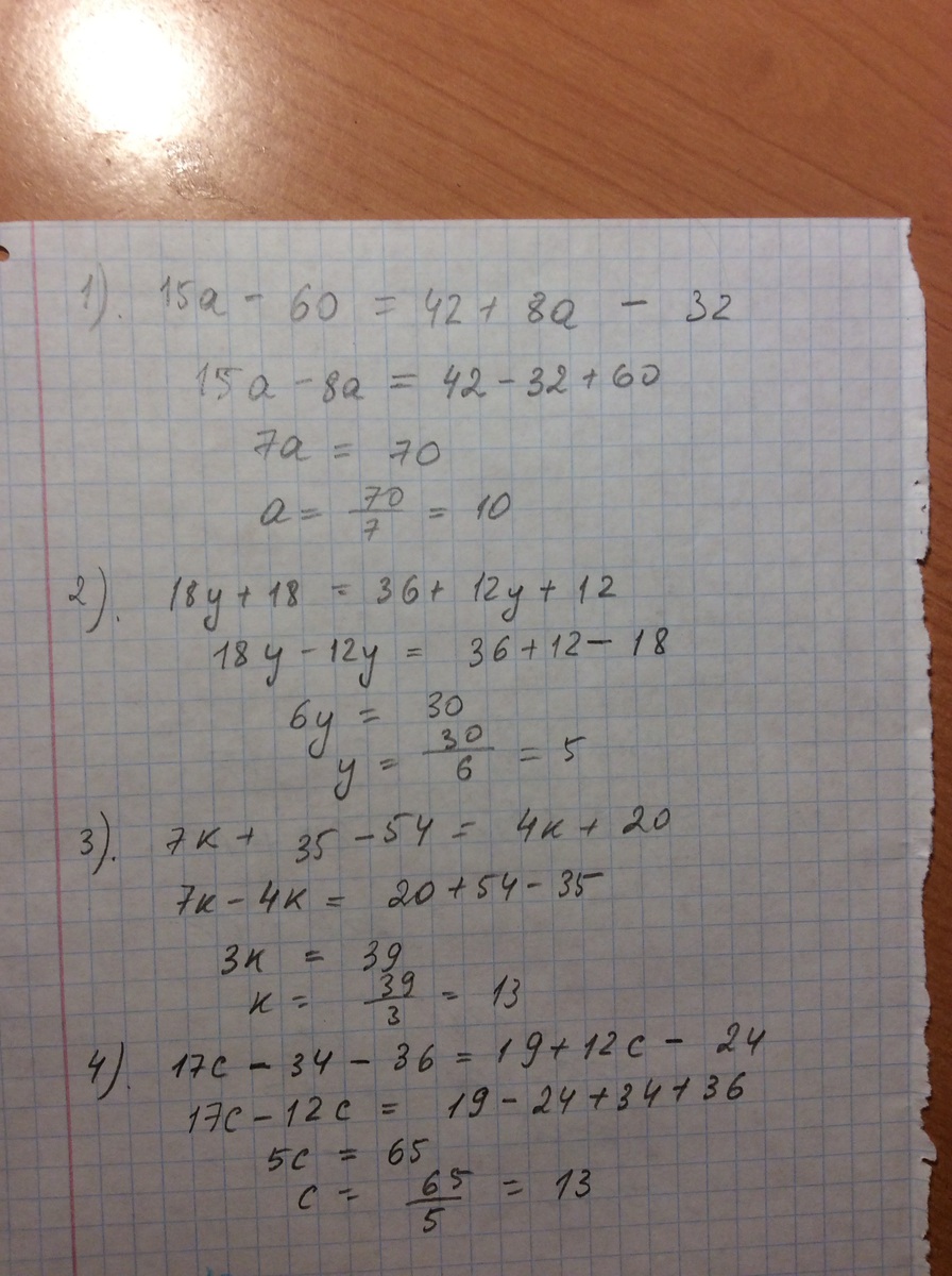 4) 17c - 34 - 36 = 19 + 12c - 24