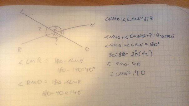 cумма этих углов равна 180 гр (2+7=9 частей)