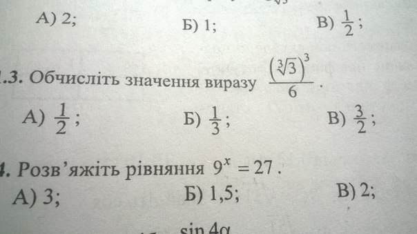 крень кубичный из 3 в кубе (3над корнем корень 3 всё в скобках в степени 3) и делить на 6