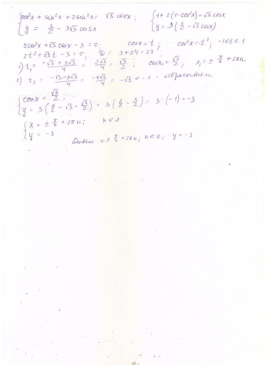 спасибо! а здесь если у через cosx выразить, получится тоже?