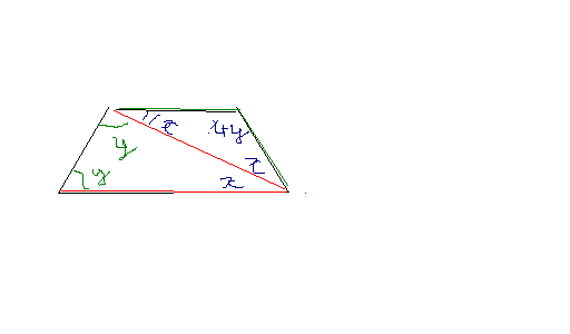 диагональ равносторонней трапеции делит ее на два равнобедренные треугольники . Найдите градусную меру углов при меньшей основе