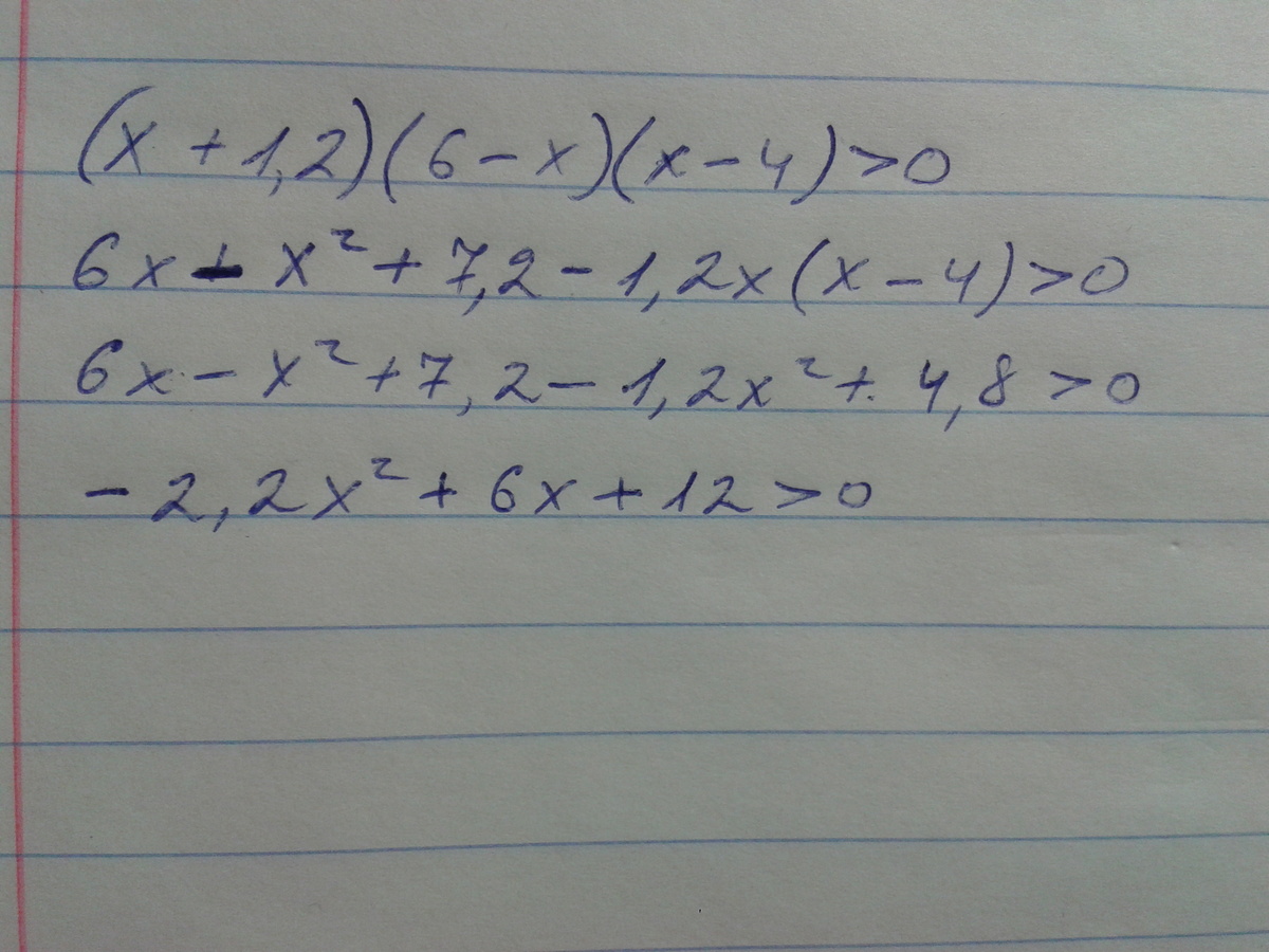 (6х-х в кв.+ 7,2-1,2х)(х-4)>0