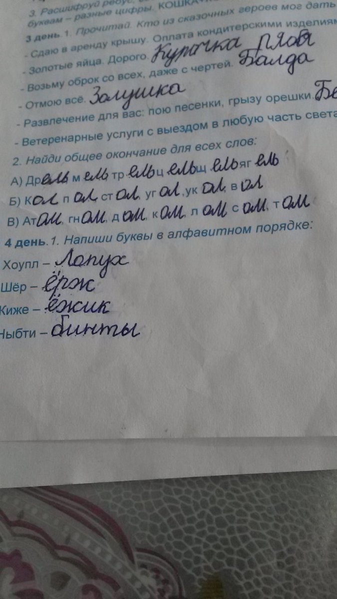 найди ещё три слова и напиши в которых буквы идут в алфавитном порядке
