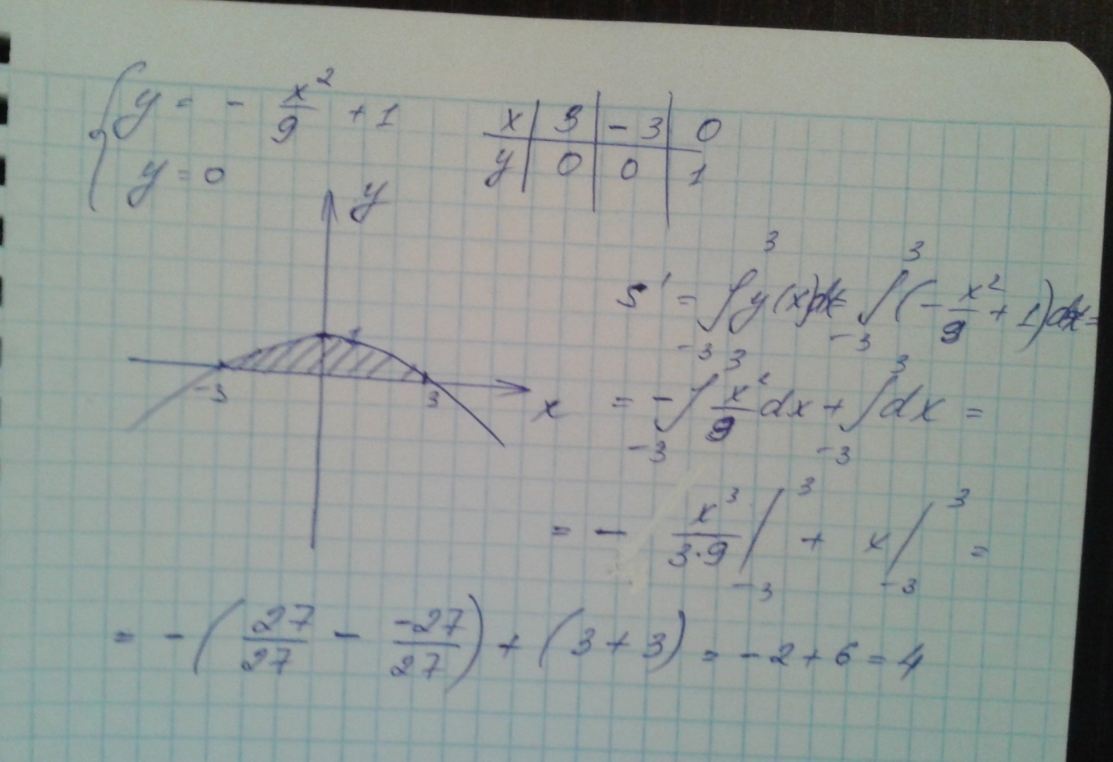 y=(-1/9x^2) +1; y=0