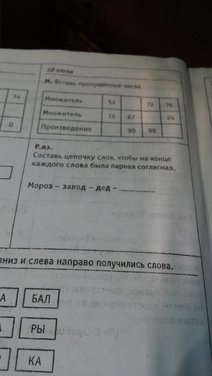 составь цепочку слов чтобы на крнце каждого слова была парная согласная