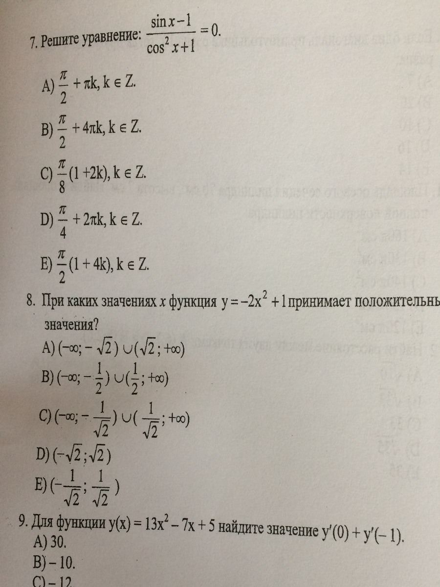 7) умножаем на знаменатель и остаётся sin(x)-1=0;