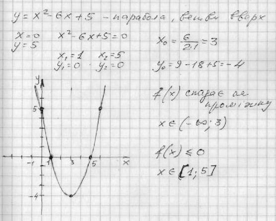 2. множину розв'язків нерівності x² - 6x + 5 ≤ 0 определим, приравняв функцию нулю: