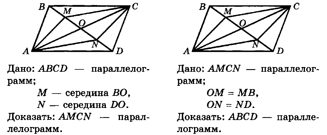 если диагонали пересекаются в одной точке, и этой точкой делятся пополам, то - это параллелограмм.