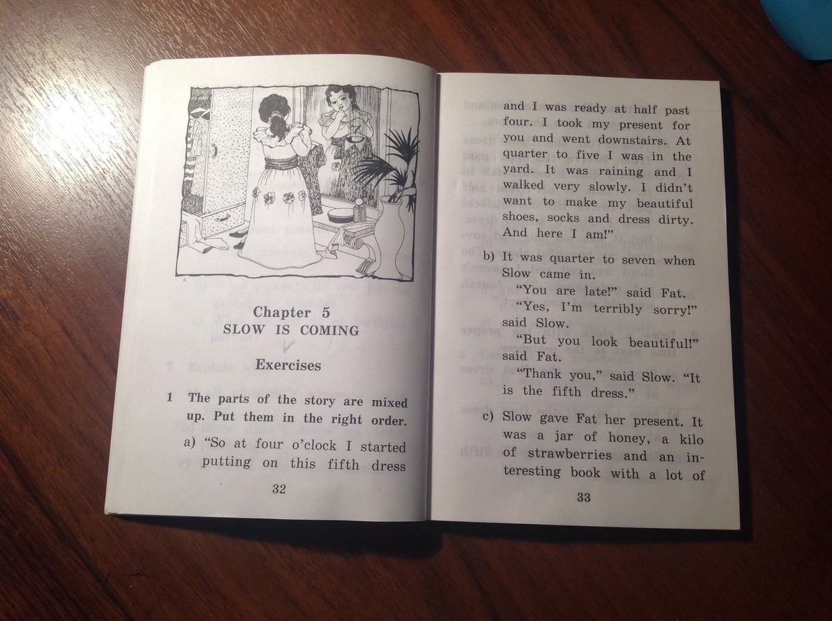 с)Слоу вручила подарок Фэт.Это была банка мёда, килограмм клубники и интересная книга с картинками.Фэт поблагодарила Слоу и они пошли наверх.