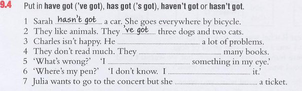2) Tina hasn't got a bicycle. I have got a bicycle.
