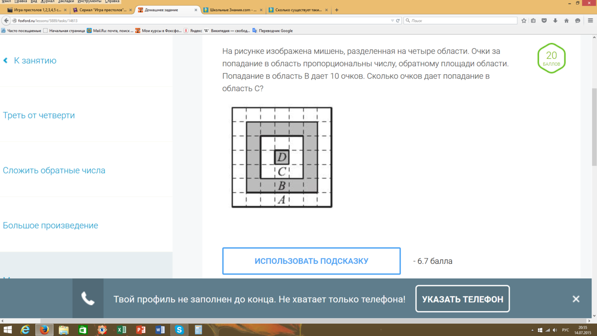Значит, за попадание в С должны давать в 2 раза больше, чем в В.
