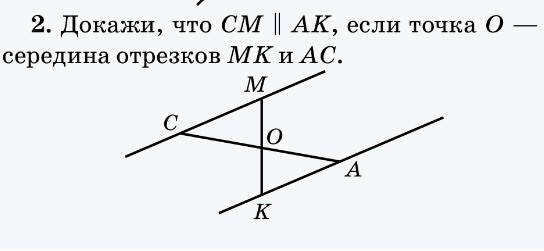 Если в четырехугольнике диагонали в точке пересечения делятся пополам,то этот четырехугольник-параллелограмм(признак),а у параллелограмма противоположные стороны параллельны