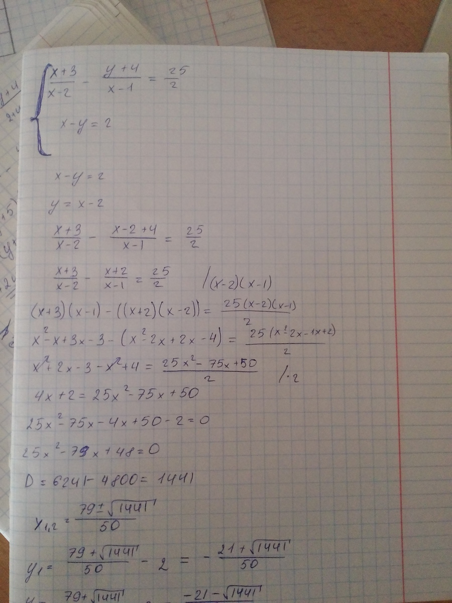 х2=(79-√1441)/50 ; у2= (-21-√1441)/50