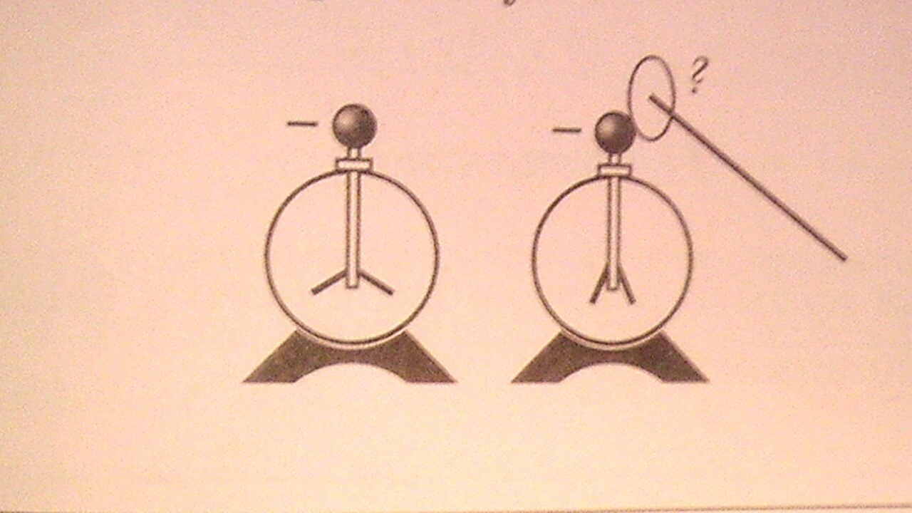 электроскопу сообщен отрицательный заряд.Каким зарядом на электроризован диск,которым прикасаются к электроскопу?