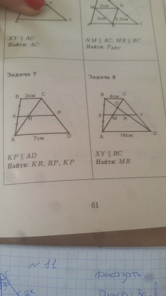 Точка Р - середина боковой стороны( по теореме Фалеса), поэтому КР - средняя линия трапеции, она равна полусумме оснований = (3+7) : 2 = 5.