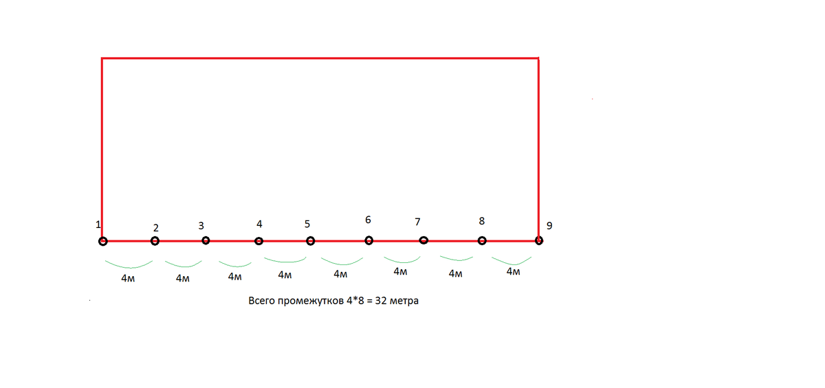 Длина одной стороны школьного сада 32 м. Эту сторону загородили забором из досок. Причём каждые 4 м вкапывали столб. Сколько всего столбов понадобилось для забора. Помогите пожайдуста.(4 класс)