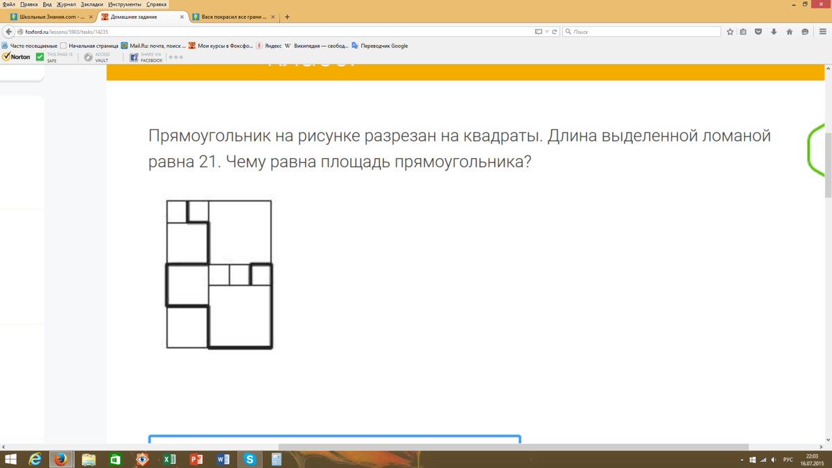 Таким же образом подсчитываем стороны прямоугольника: 7 частей высота и 5 частей ширина.