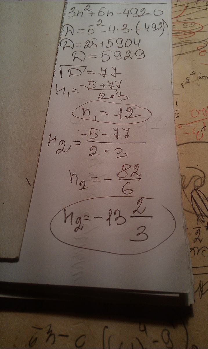 3n^2+5n-492=0