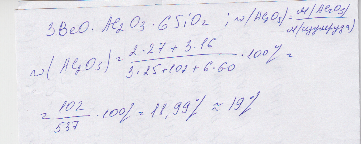 Массовая доля оксида алюминия в изумруде 3BeO х Al2O3 x 6SiO2 составляет: