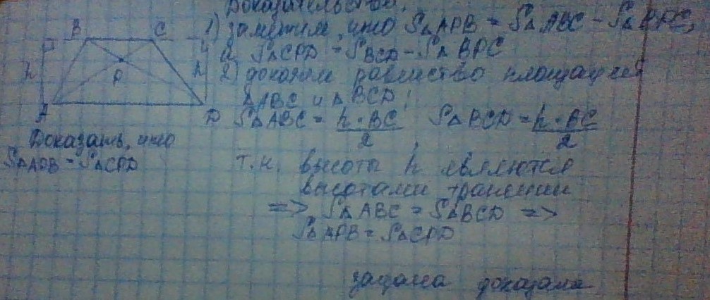 в трапеции АВСD с основаниями AD и BC диагонали пересекаются в точке Р. Докажите, что площади треугольников APB и CPD равны