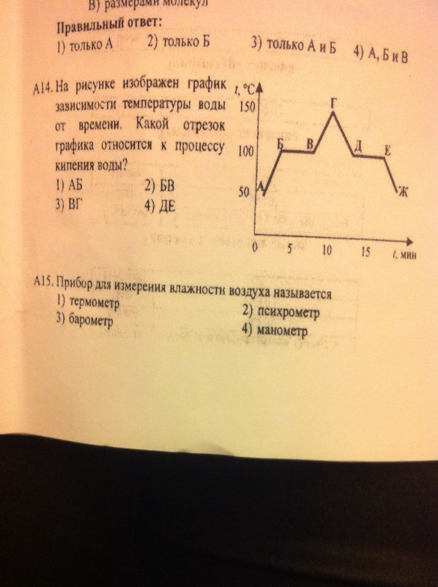 На рисунке изображен график зависимости температуры воды от времени, какой отрезок графика относится к процессу кипения воды