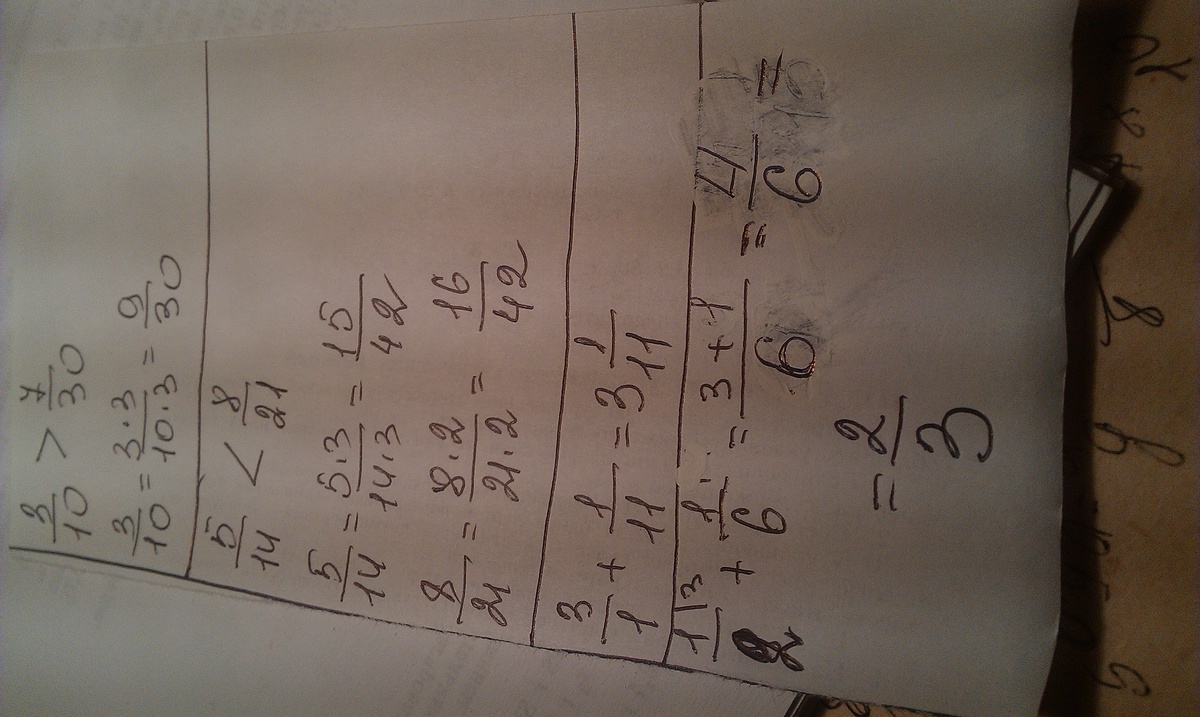 1. Сравните дроби 1) три десятых и семь тридцатых