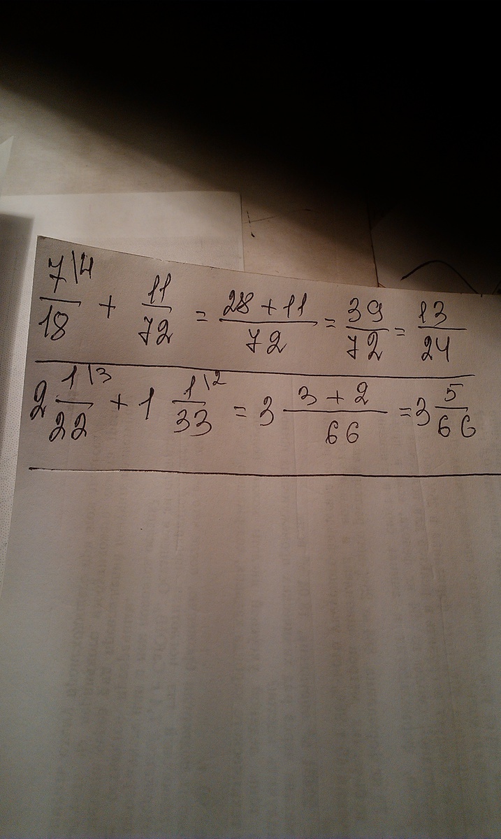 7\18+ 11\72 = (28 +11)\72 = 39\72 = 13\24