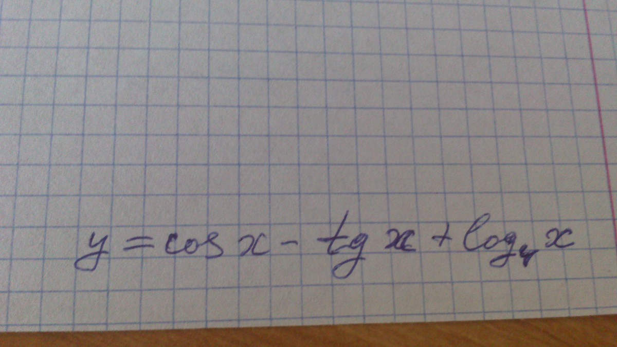 y'=(cosx-tgx+log₄x)'=-sinx-1/cos₂x+1/(x*ln4)