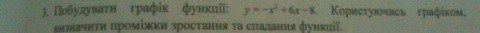 Так как данная парабола имеет ветви, опущенные вниз (коэффициент и х² отрицателен), то при -∞ < x <3 функция возрастает, а при 3 < x < ∞ функция убывает.