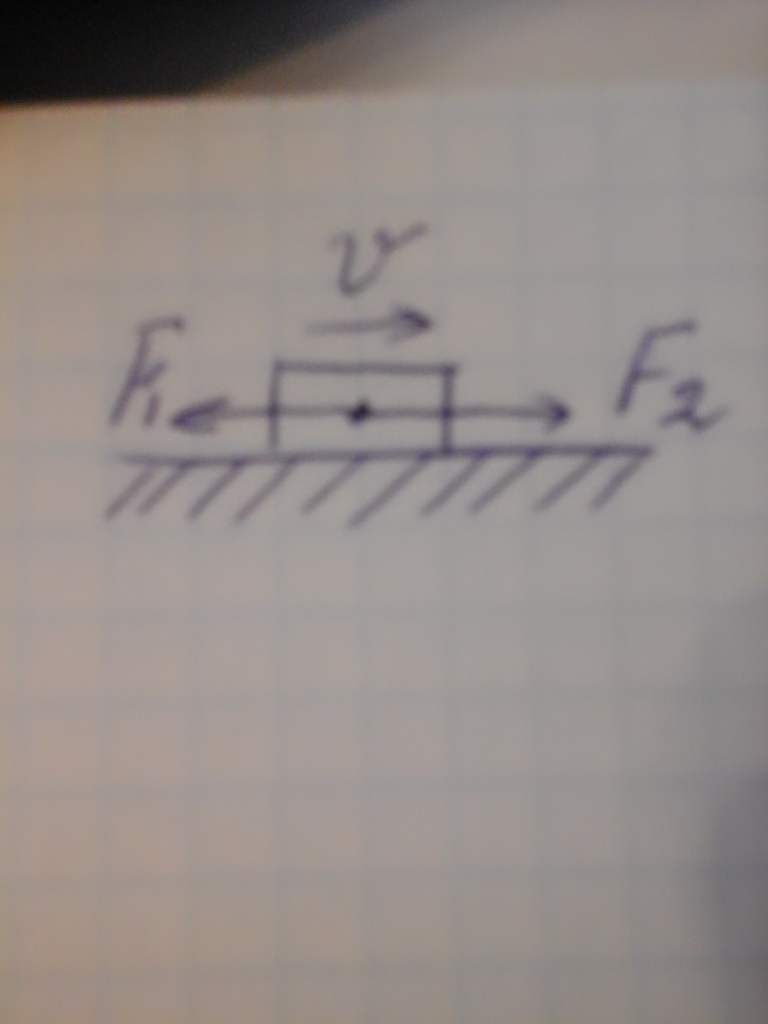 на брусок массой m=5 кг с горизонтальной плоскости действуют две силы F1= 20 H и F2=15H .Направление силы скорость бруска v показано на рисунке .Чему равно и куда направлено ускорение бруска?