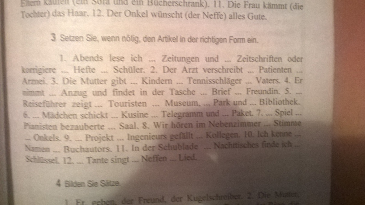 Нужно поставить артикли в правильной форме где надо вместо точек( это немецкий язык) пожалуйста помогите)задание 3! НЕМЕЦКИЙ ЯЗЫК