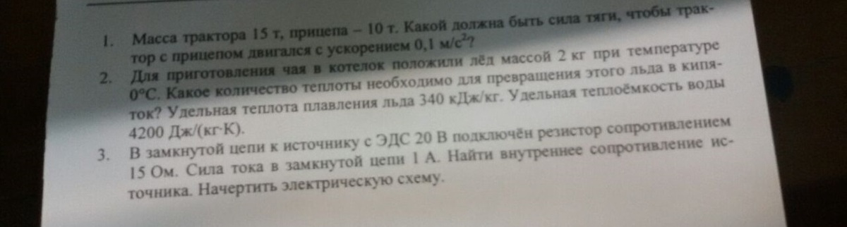 масса трактора 15 т, прицепа 10 т, какой должна быть сила тяги чтобы трактор с прицепом двигался с ускорением 0,1 м/c^2
