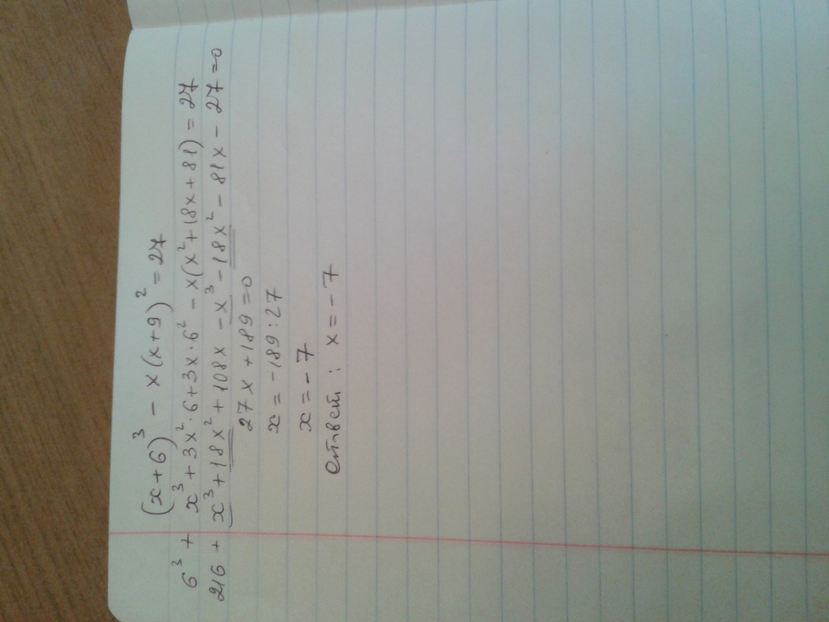 Решите уравнение (x+ 6)^3-x(x +9)^2=27