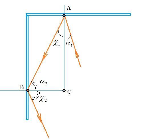 луч света падает на систему из двух взаимно перпендикулярных зеркал. Угол падения луча на первое зеркало равен 20 градусам. Отразившись от первого зеркала, луч света падает на второе. Определите в градусах угол отражения луча от второго зеркала?