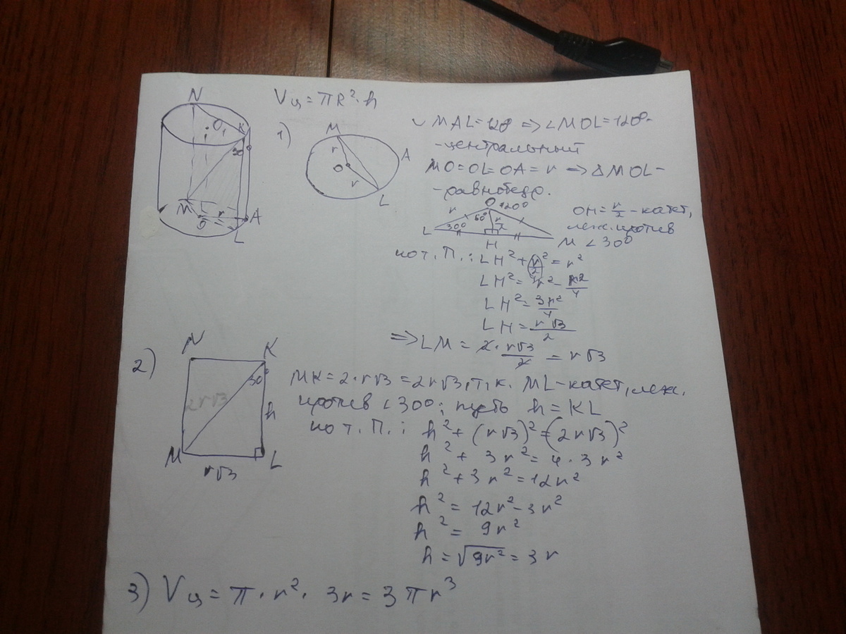 найти объем цилиндра.